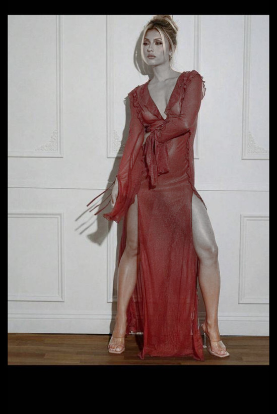 رنگ پیراهن قرمز شاین دار و مناسب خانم های شیک و با سلیقه است.